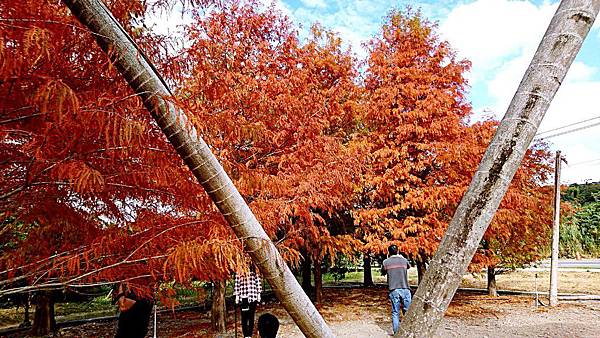 位在初鹿國中對面的落羽松其實還沒全紅、只有路頭的幾顆較紅、約莫兩個禮拜後應該就會很漂亮了、到時再來跟大家報告“松況”!
